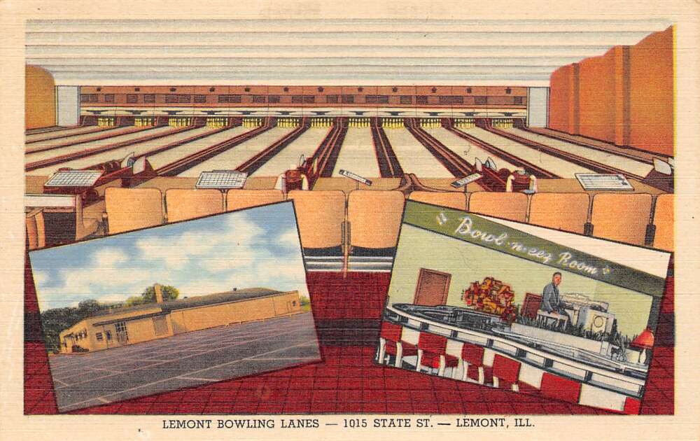 Lemont Illinois Lemont Bowling Lanes, Multi-View Linen Vintage Postcard U11120
