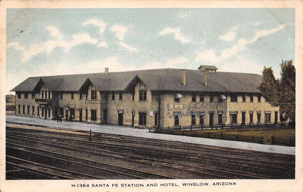 Winslow Arizona Santa Fe Station & Hotel, White Border Vintage PC U11126