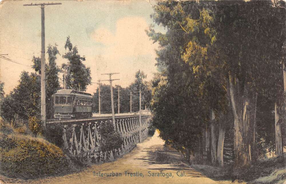 Saratoga California interurban Trestle, Color Lithograph, Vintage PC U27036