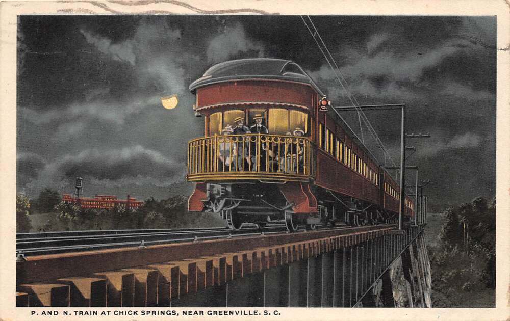 Greenville South Carolina P. & N. Train At Chick Springs, Vintage PC U27037