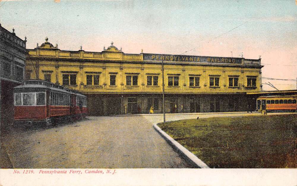 Camden New Jersey Pennsylvania R.R. Ferry, Trolleys, Vintage Postcard U27043