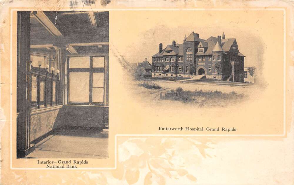 Grand Rapids Michigan, U27047, Butterworth Hospital & Interior Of Grand Rapids National Bank, PC