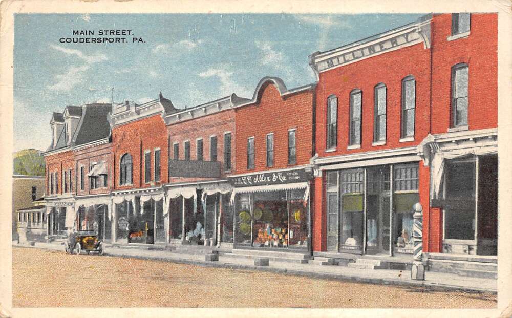 Coudersport Pennsylvania Main Street, Barber Pole, White Border, PC U27048