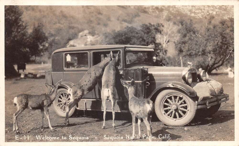 Sequoia National Park California Deer by Car Real Photo Postcard AA112641