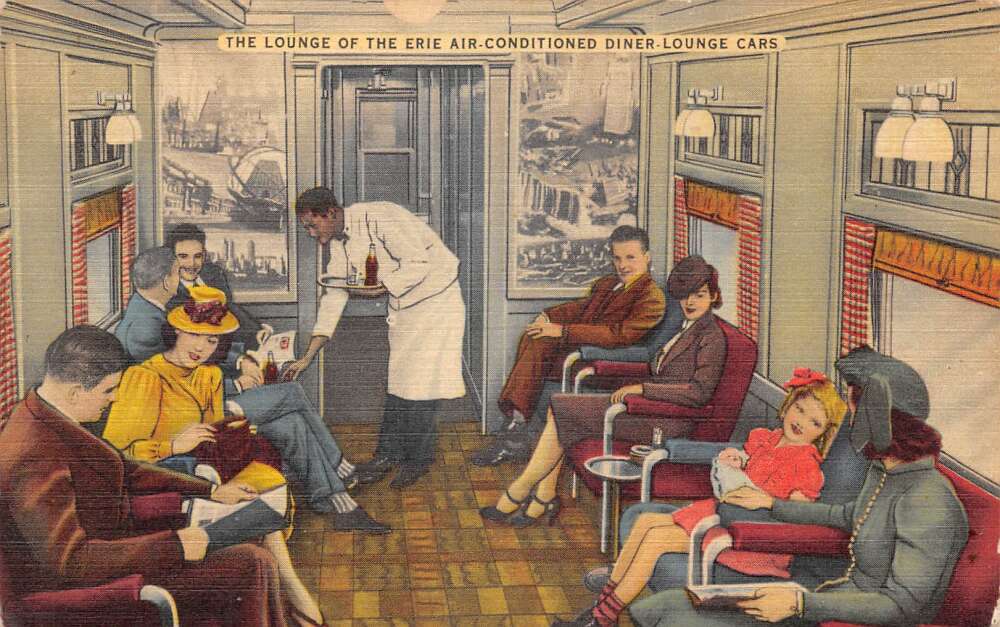 Erie Railroad Air Conditioned Diner Lounge Train Car Postcard AA112647