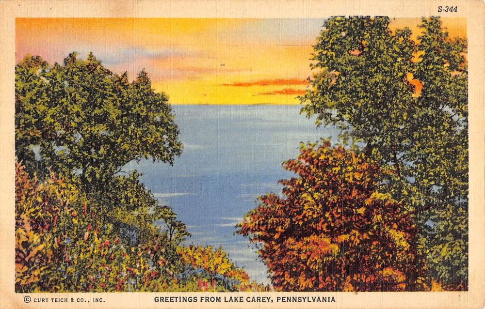Lake Carey Pennsylvania Sunset Waterfront Greeting Antique Postcard K86252