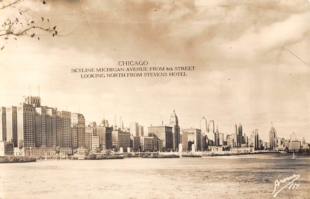 Chicago Illinois Skyline Michigan Ave Real Photo Antique Postcard K87696