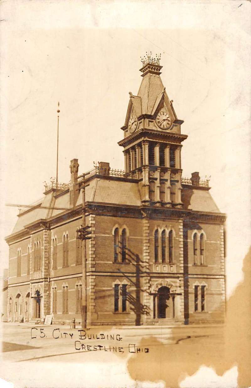 Crestline Ohio City Building Real Photo Antique Postcard K85632