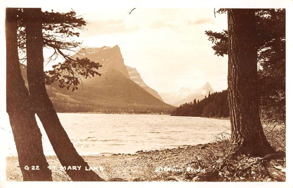St Mary Lake Montana View from Waters Edge Real Photo Antique Postcard W32