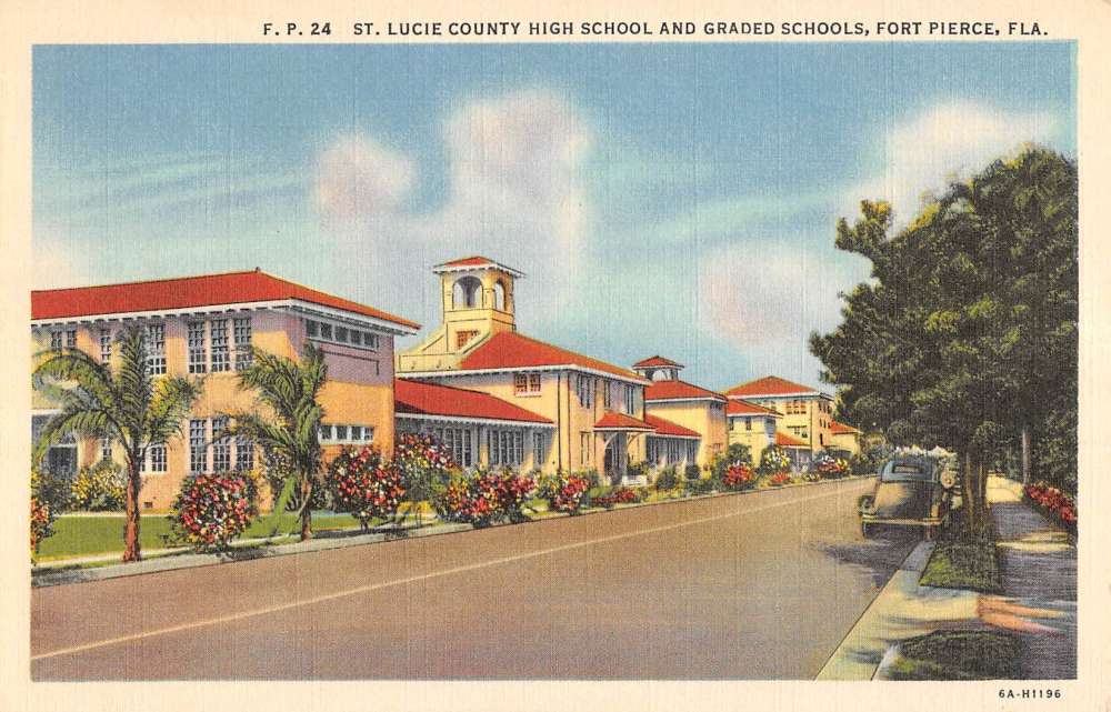 Fort Pierce Florida St Lucie High School Street View Vintage Postcard K85249