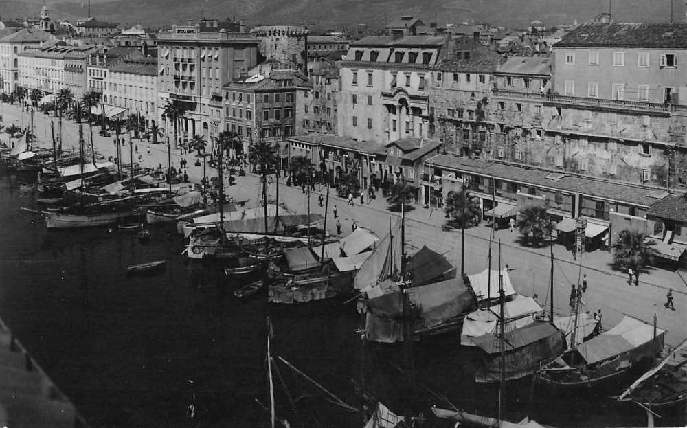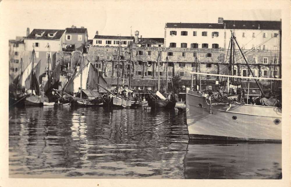 Split Croatia Harbor Boats Waterfront Real Photo Antique Postcard K85271