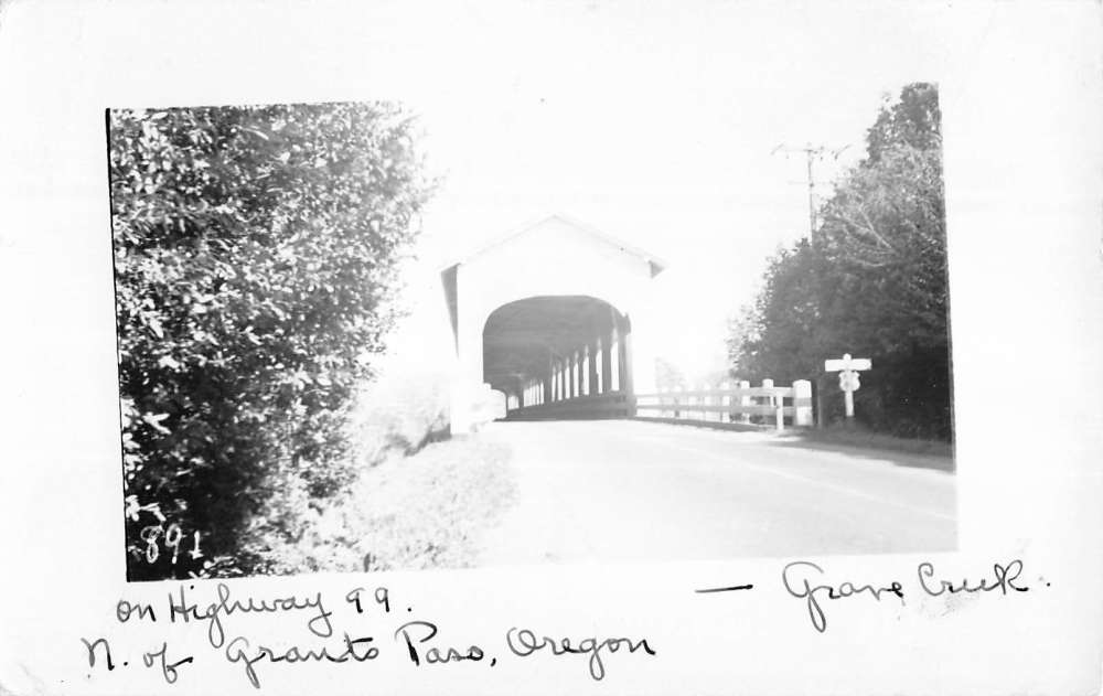 Grants Pass Oregon Covered Bridge Real Photo Antique Postcard K84653