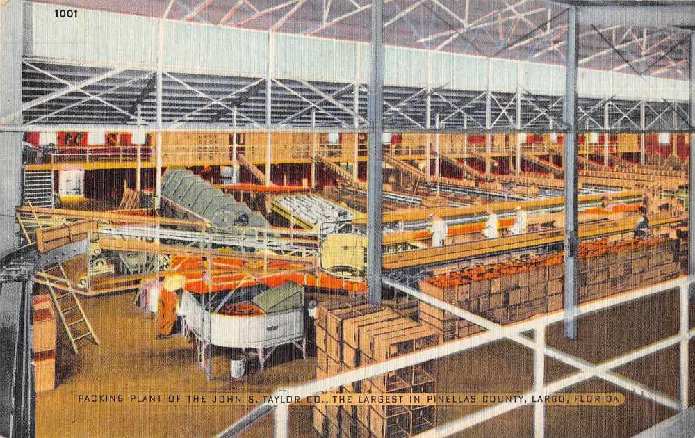Largo Florida Packing Plant of John S Taylor Co Interior Antique Postcard J73953