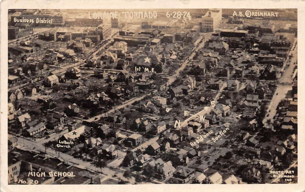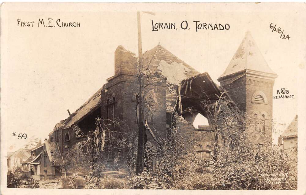 Lorain Ohio Tornado Disaster First ME Church Real Photo Postcard AA106287