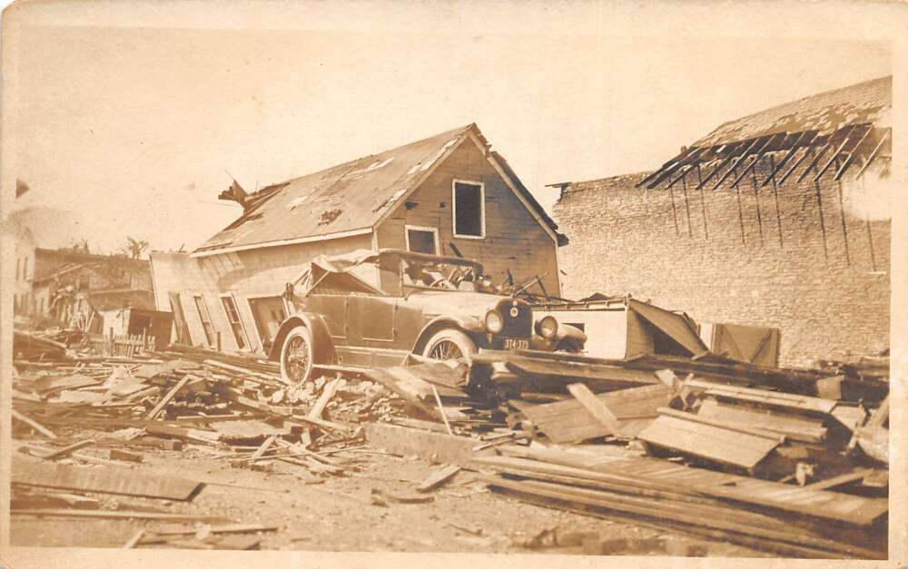 Lorain Ohio Tornado Disaster Car in Wreckage Real Photo Postcard AA106281