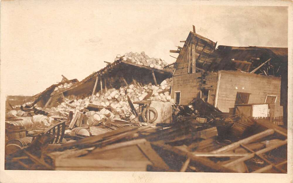 Lorain Ohio Tornado Disaster Wooden Barrels in Wreckage Real Photo PC AA106282