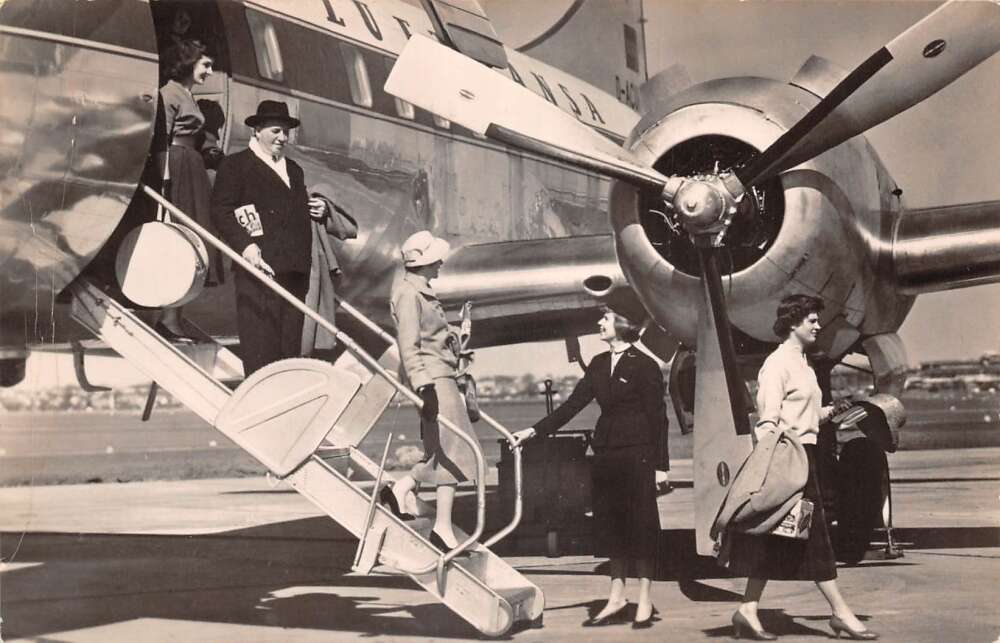 Lufthansa Airlines Passengers Disembarking Airplane Real Photo PC AA85952