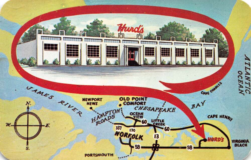 Lynnhaven Virginia Hurd’s Seafood Restaurant and Map Vintage Postcard AA85876