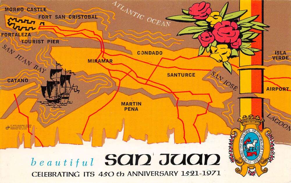 San Juan Puerto Rico 450th Anniversary Map View Vintage Postcard AA85877