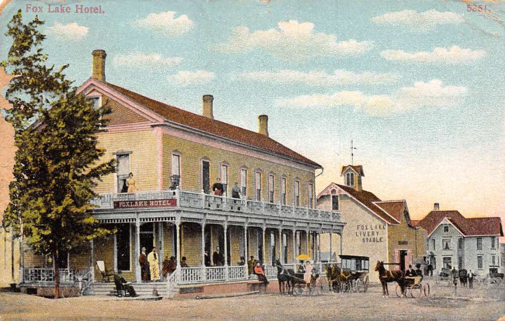 Fox Lake Wisconsin Fox Lake Hotel Livery Stable Street Scene Postcard AA105882