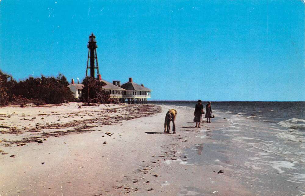 Sanibel Island Florida Lighthouse Point Gathering Shells Postcard AA105897