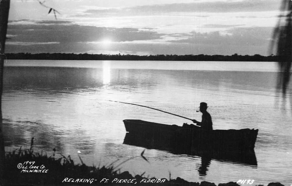 Fort Pierce Florida Fishing at Sunrise Smoking Pipe Real Photo Postcard AA105898