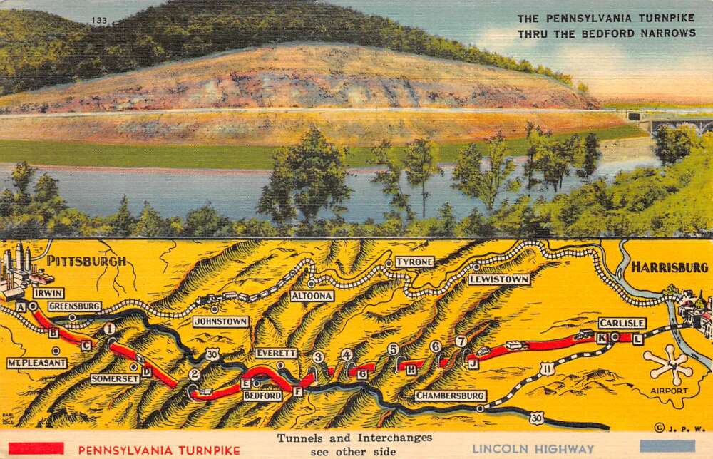 Pennsylvania Turnpike Pittsburgh to Harrisburg Tunnels Map Postcard AA85879