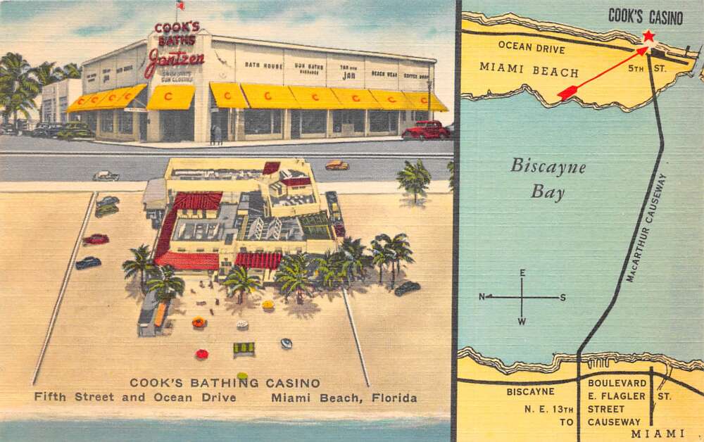Miami Beach Florida Cook’s Bathing Casino and Map Vintage Postcard AA85882