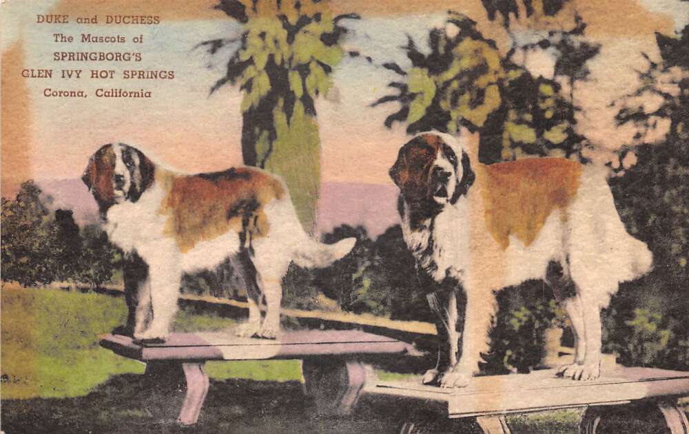 Corona California Glen Ivy Hot Springs Mascot Dogs Vintage Postcard AA106063