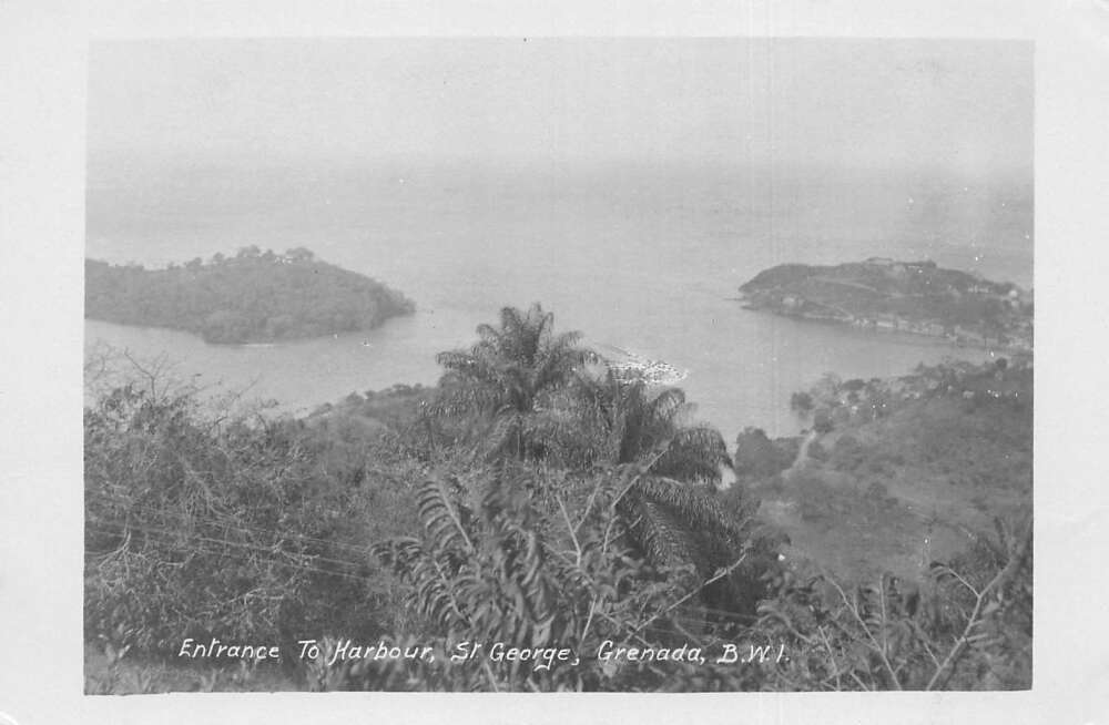 St George Grenada Entrance to Harbour Birds Eye View Real Photo Postcard AA85346