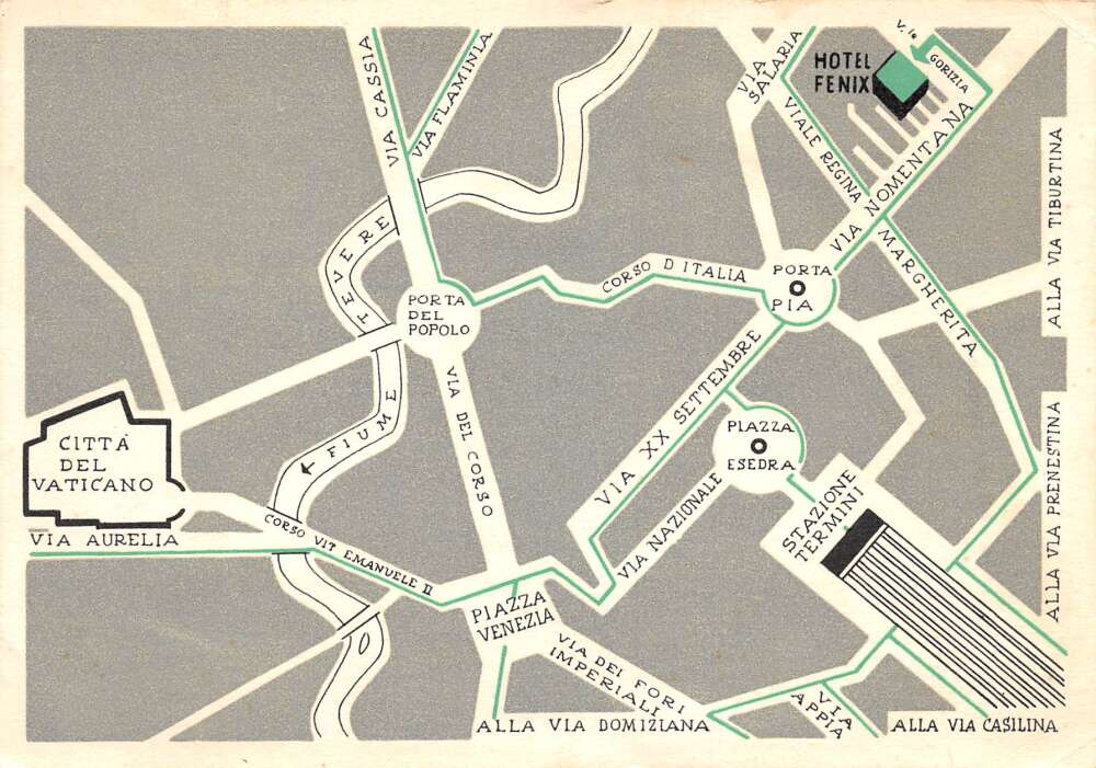 Rome Italy Hotel Fenix Map View Vintage Postcard AA85350