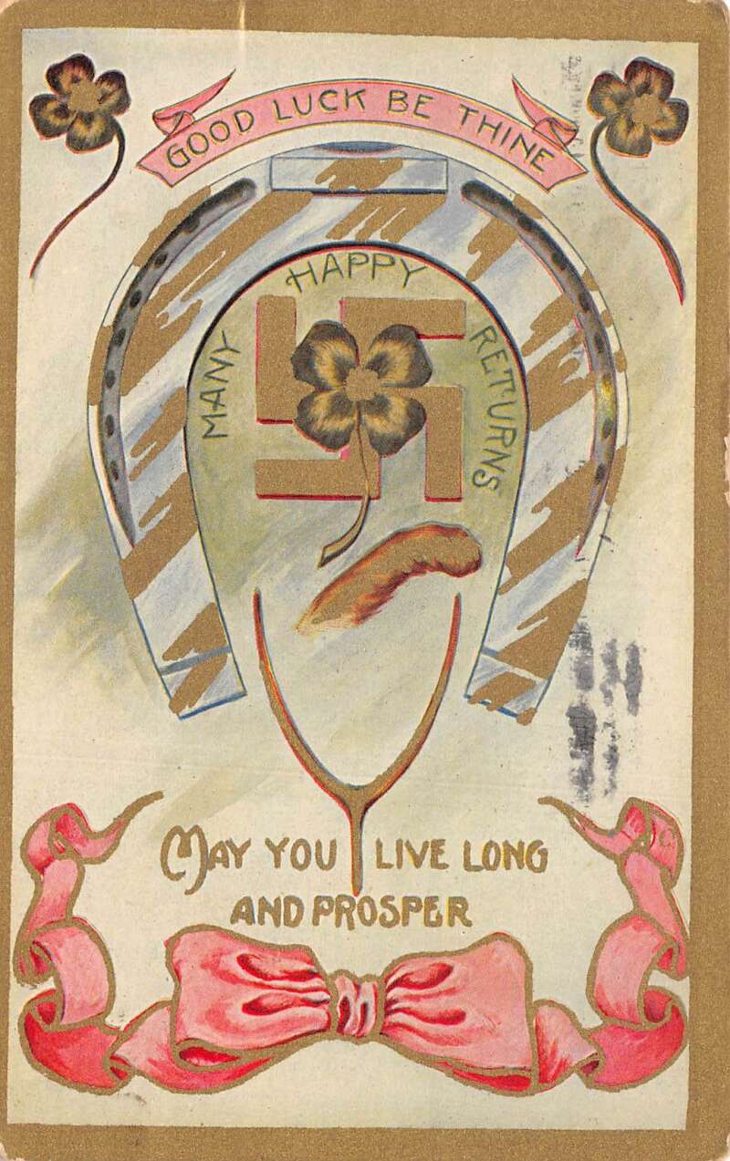 Greetings Good Luck Swastika Clovers Vintage Postcard AA72735