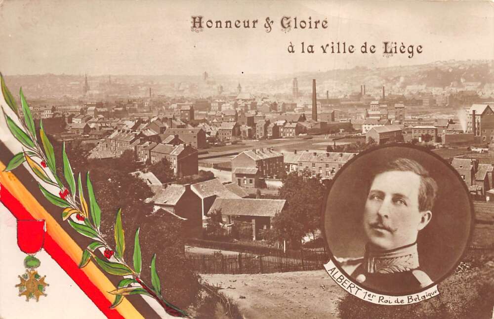 Liege Belgium and King Albert Birds Eye View Vintage Postcard AA72741