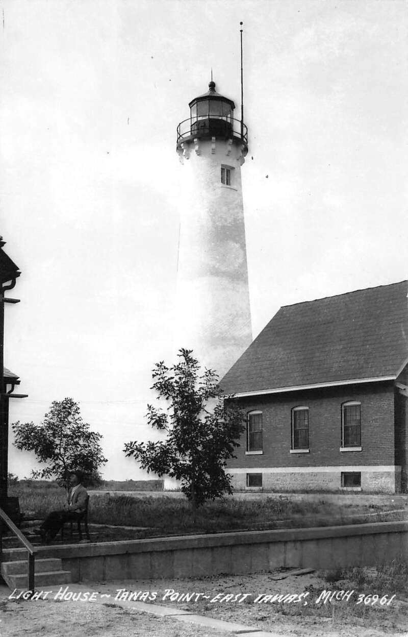 East Tawas Michigan Tawas Point Lighthouse Real Photo Vintage Postcard AA72743