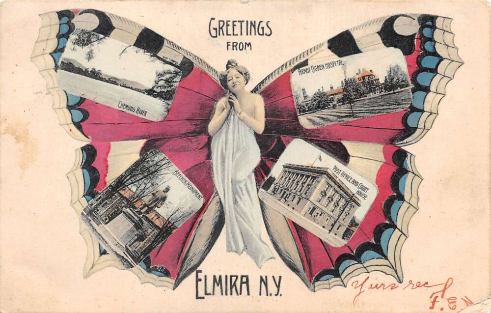 Elmira New York Greetings Fantasy Butterfly Fairy Multiview Postcard AA109948