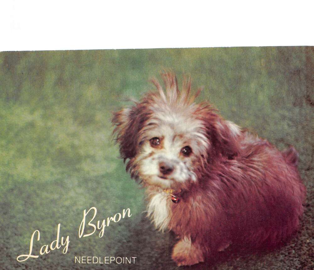 Palm Desert California Needlepoint Lady Byron Puppy Vintage Postcard AA105368