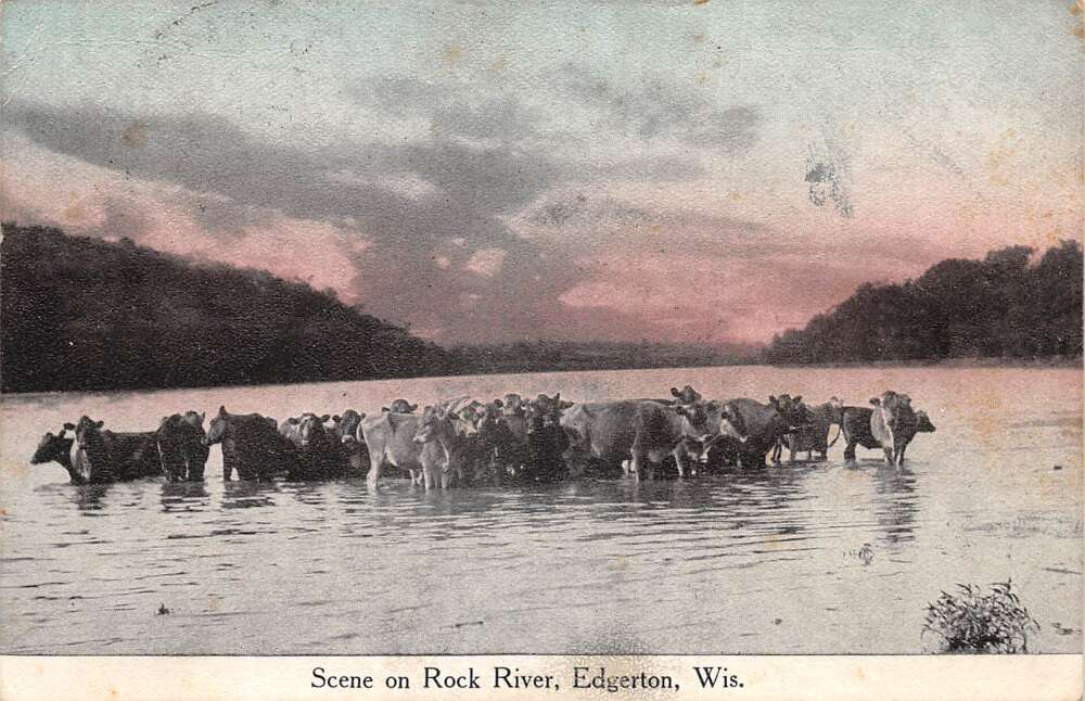 Edgerton Wisconsin Cows Bathing in Rock River Vintage Postcard AA105369