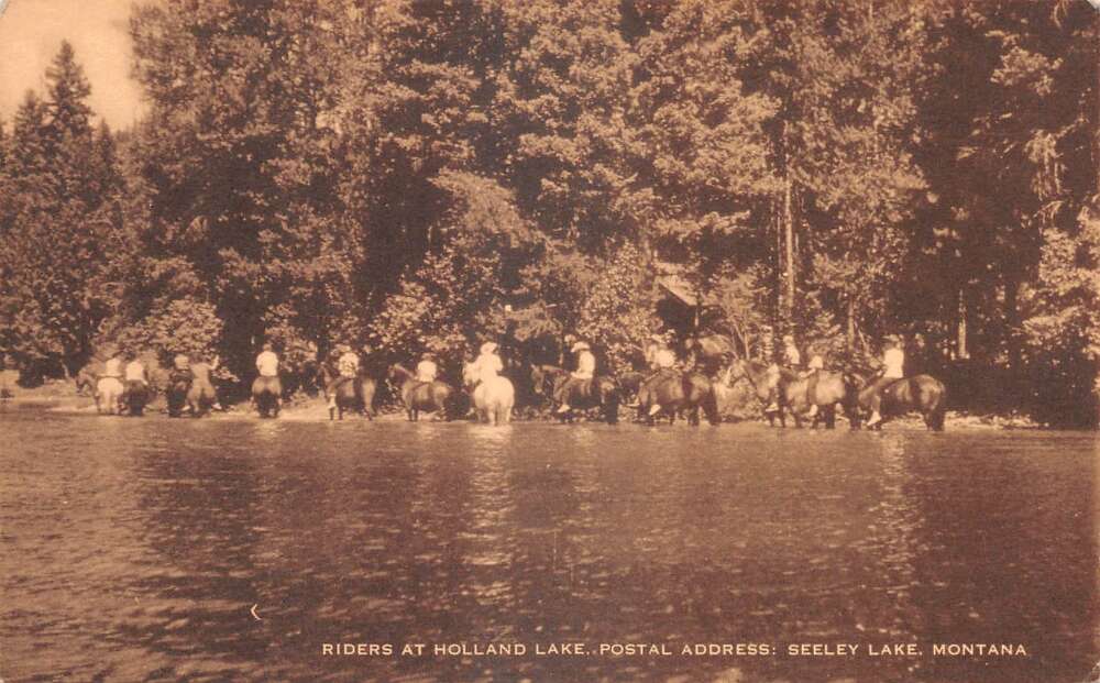 Seeley Lake Montana Holland Lake Horse Riding Vintage Postcard AA105380