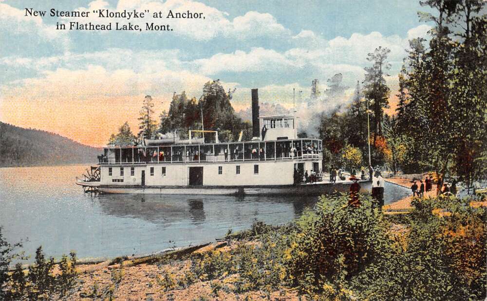 Flathead Lake Montana New Steamer Klondyke at Anchor Vintage Postcard AA105381