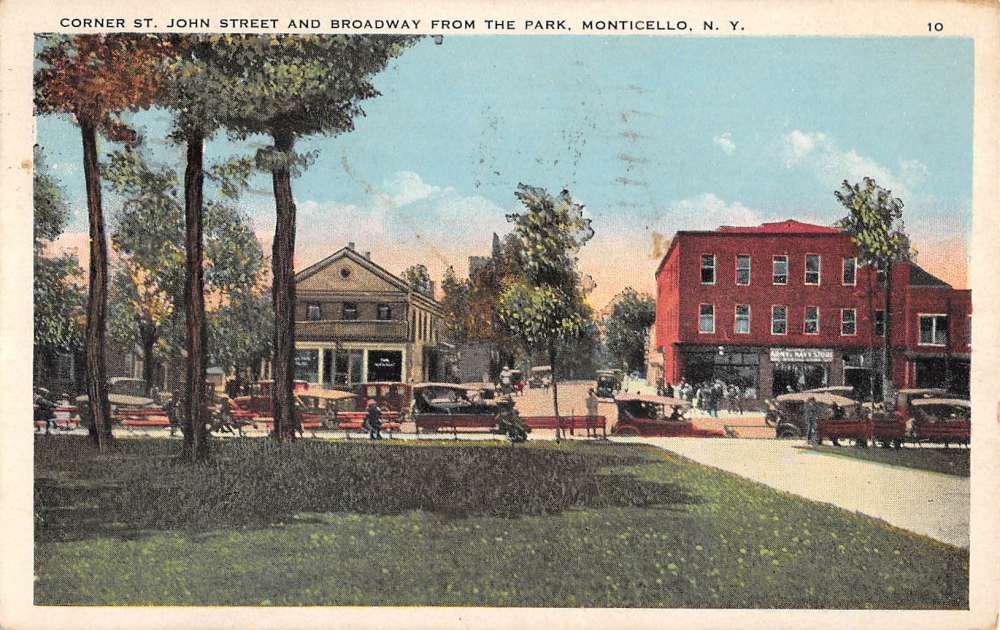 Monticello New York Corner Street Scene Antique Postcard K65030