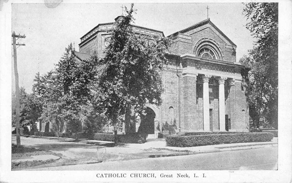 Great Neck New York Catholic Church Street View Antique Postcard K65002