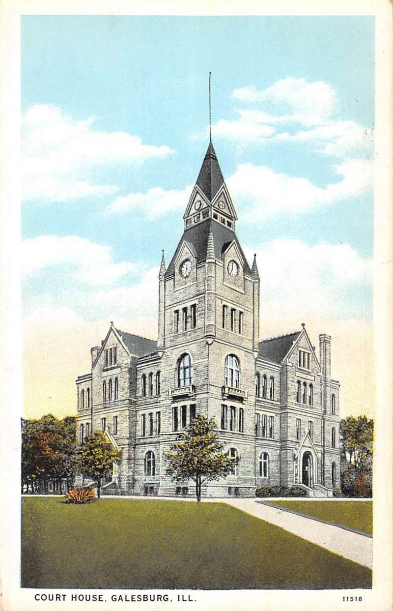 Galesburg Illinois Court House Street View Antique Postcard K64604