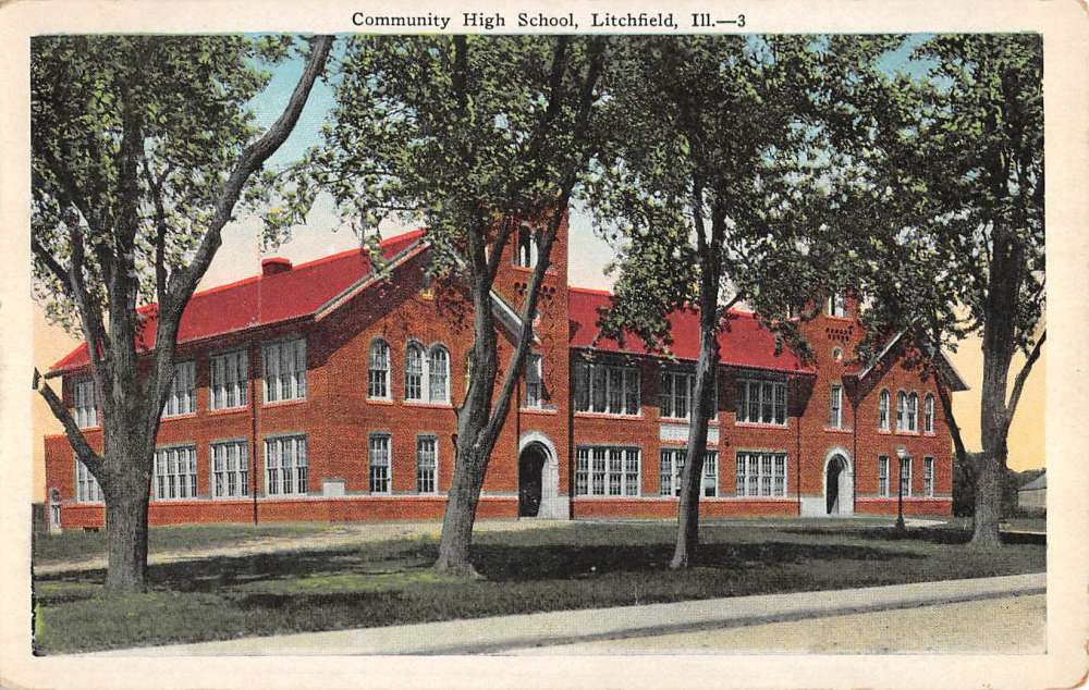 Litchfield Illinois Community High School Street View Antique Postcard K64607