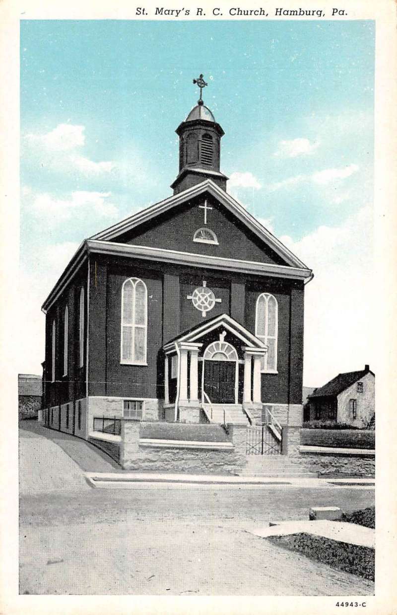 Hamburg Pennsylvania St Marys RC Church Street View Antique Postcard K64531
