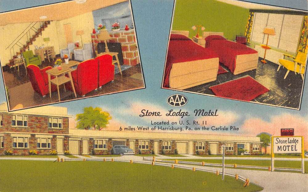 Harrisburg Pennsylvania Stone Lodge Motel Multiview Antique Postcard K64532