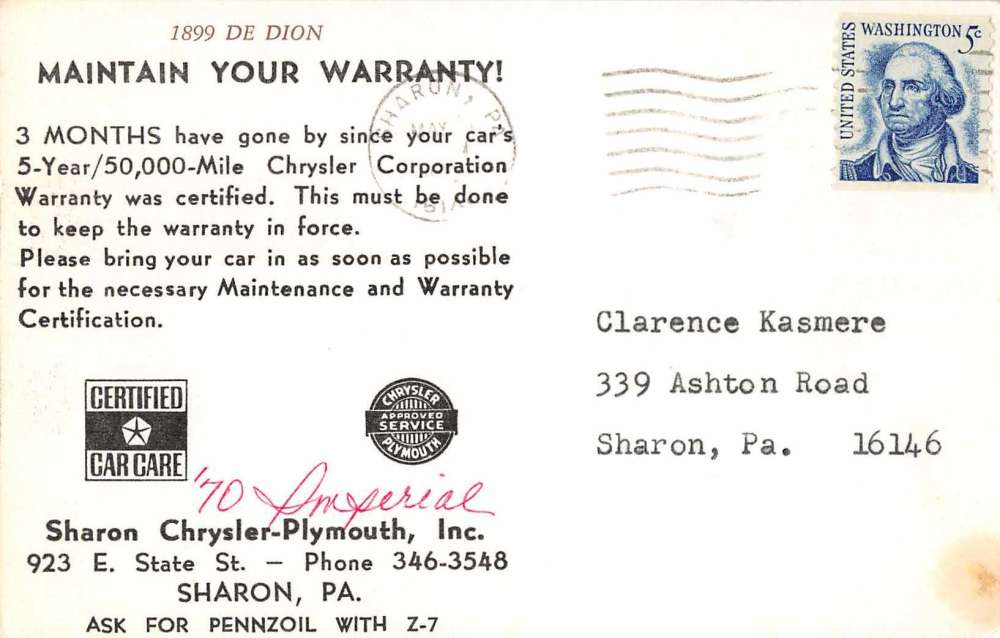 Sharon Pennsylvania Chrysler Plymouth Dealship Ad Vintage Postcard J67131
