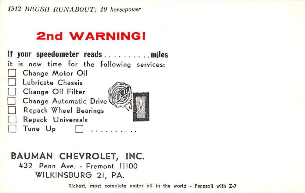 Wilkinsburg Pennsylvania Baumon Chevrolet Dealship Ad Vintage Postcard J67132