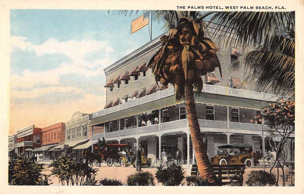 West Palm Beach Florida Palms Hotel Street View Antique Postcard K63794