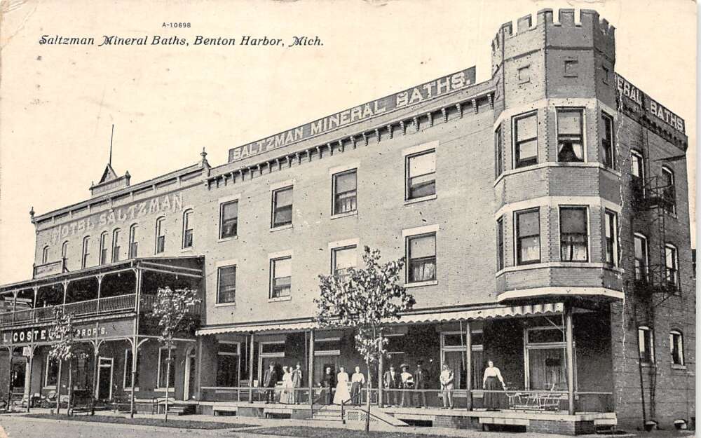 Benton Harbor Michigan Saltzman Mineral Baths and Hotel Postcard AA105341