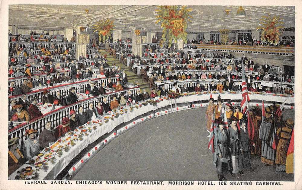Chicago Illinois Morrison Hotel Terrace Garden Ice Skating Postcard J67216